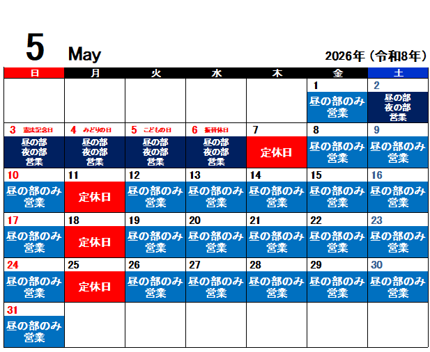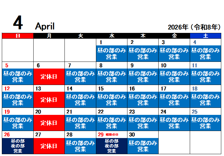3月1日(日)~4月24日(金)までは、お昼のみの営業となります。